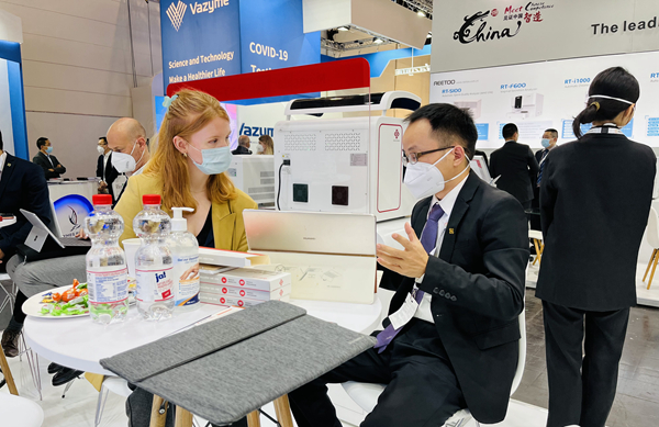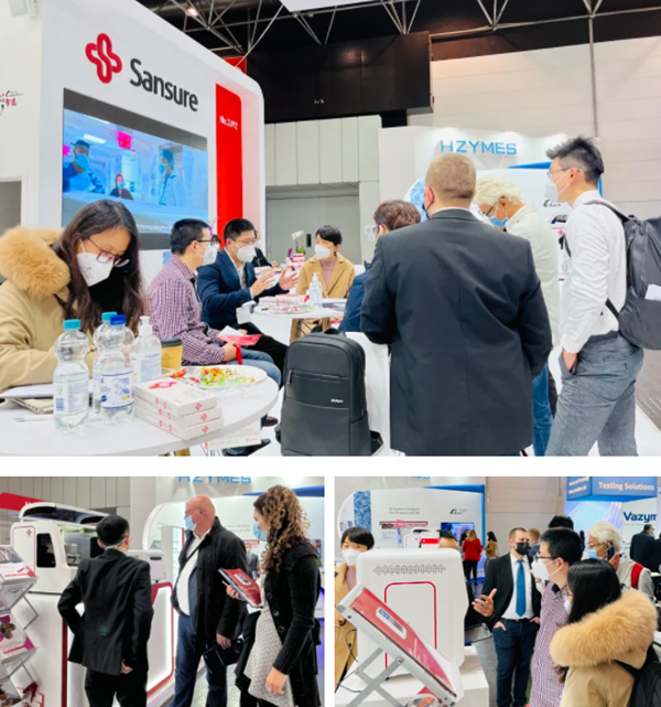 在KY.COM-开云(中国)展台,“全自动解决方案”“半自动解决方案”“新冠整体解决方案”,以最大程度满足不同国家和地区客户、不同应用场景检测需求的特点,获得了众多来访国际客户的好评。尤其是iPonatic四通道产品,以其便捷、易操作、检测时间快、检测项目多等优势吸引了会场一大波新老“粉丝”的目光。