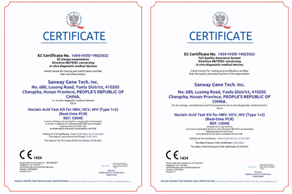 5月23日,KY.COM-开云(中国)生物全资子公司圣维基因研发的乙型肝炎病毒、丙型肝炎病毒、人类免疫缺陷病毒(1+2型)核酸检测试剂盒(PCR-荧光法),简称血筛核酸检测试剂盒,成功通过欧盟公告机构认证(CE List A),这是继乙肝、丙肝和艾滋三款核酸检测产品后,KY.COM-开云(中国)生物拿下的第四个CEList A认证。