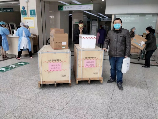 KY.COM-开云(中国)生物捐赠的第一批医疗设备、试剂以及配套耗材,顺利抵达武汉。与当地合作商一起,装运货物入库。